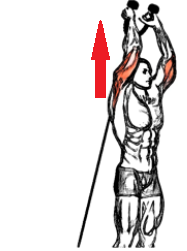 호흡을 뱉으면서 삼두근의 수축에 집중 하면서 양팔을 하늘 위로 퍼 올린다.(사진1)