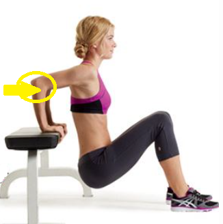 별도의 장소나 기구의 이용없이 할수 있는 삼두근 운동으로 벤치나 의자 그외 높이가 있는 계단이나