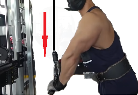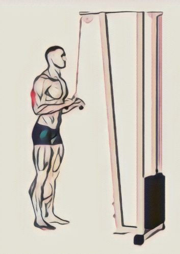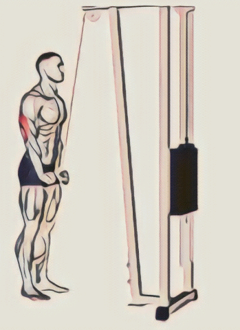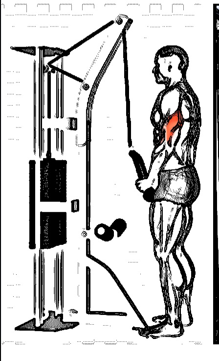 푸쉬 다운 이라고도 불리며 케이블을 이용하여 고중량을 사용하는