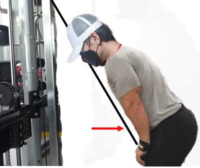 이렇게 자세를 잡아야 최종 수축 지점에서 뒤로 당길때 앞에서