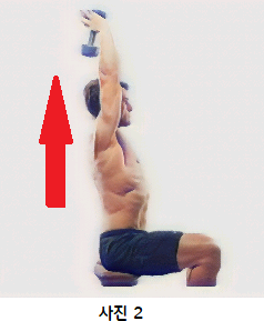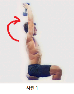 운동 중인 팔을 펴 올릴 때 앞쪽으로 어깨가 이동하며 흔들리지 않도록 고정해야 하며