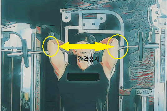 양팔의 간격은 이완과 수축동작을 일정하게 유지하길 바란다.