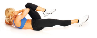 윗몸일으키기와 비슷한 동작으로 하되, 상체를 비틀어줌으로써 옆구리 부위를 함께 운동할 수 있다.