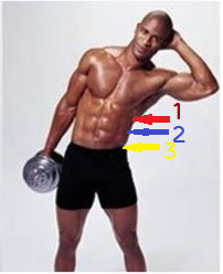 옆구리 위의 "1"지점 부터 골반 시작점까지 3 부위를 나누어