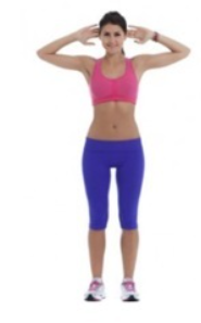 1 . 양손은 머리 뒤로 두고 어깨너비로 발을 위치한다.