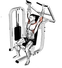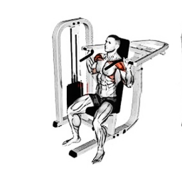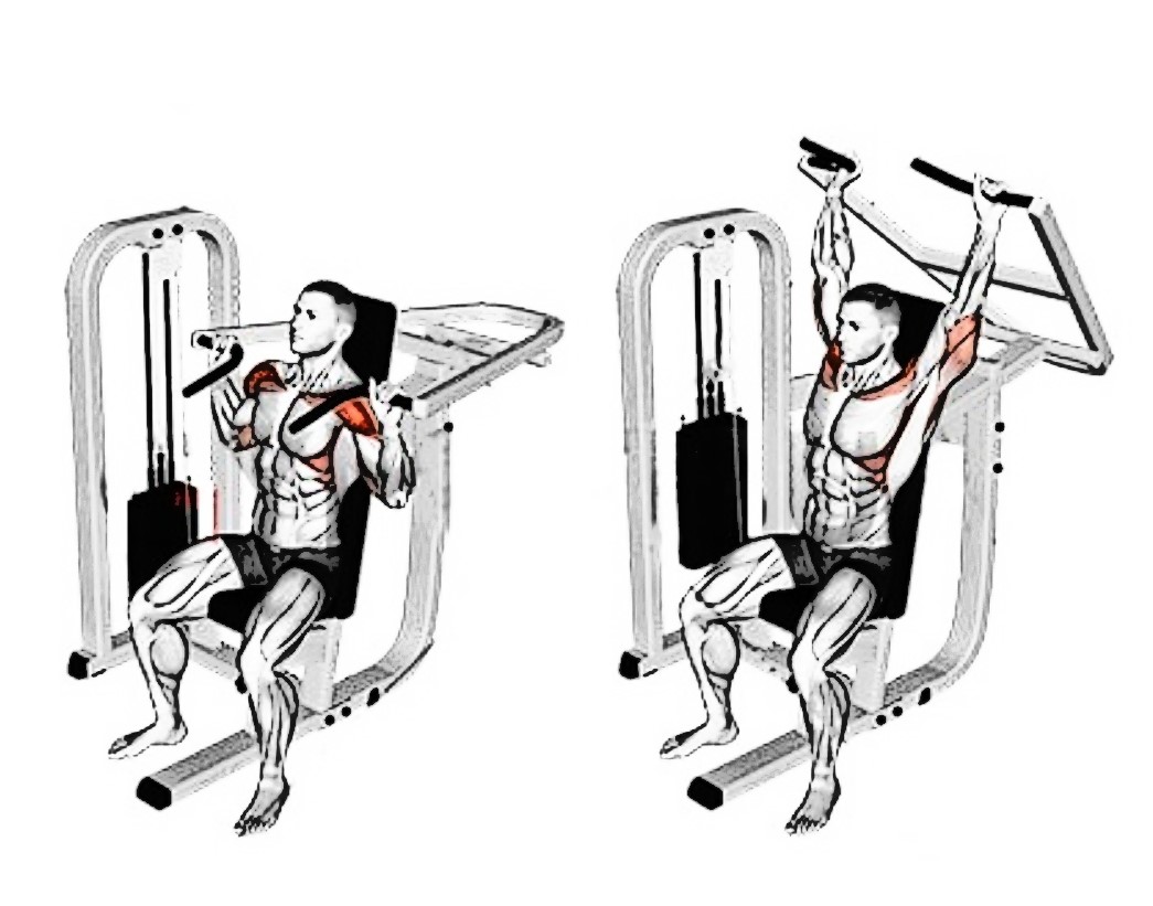 밀리터리 프레스 운동을 머신화하여 안전하며 고중량을 사용할 수 있는 운동 머신이다.