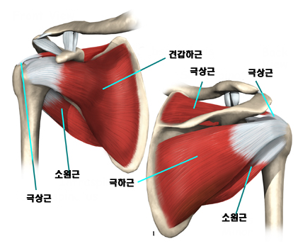 어깨 관절의 구조적인 기능을 보면 견봉이 여러 회전근에 둘러 싸여