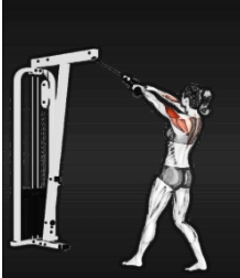 수축에 집중하여 가슴 부위로 당기면서 후면 삼각근이 따라 움직이게 한다.