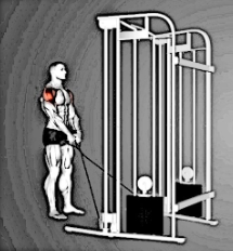 케이블을 이용한 하부승모근 강화운동으로 삼각근도 같이 작용한다.