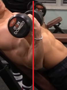 인클라인 벤치에 비스듬히 누운듯 앉아서 덤벨을 이용해 이두근의 이완을 좀더