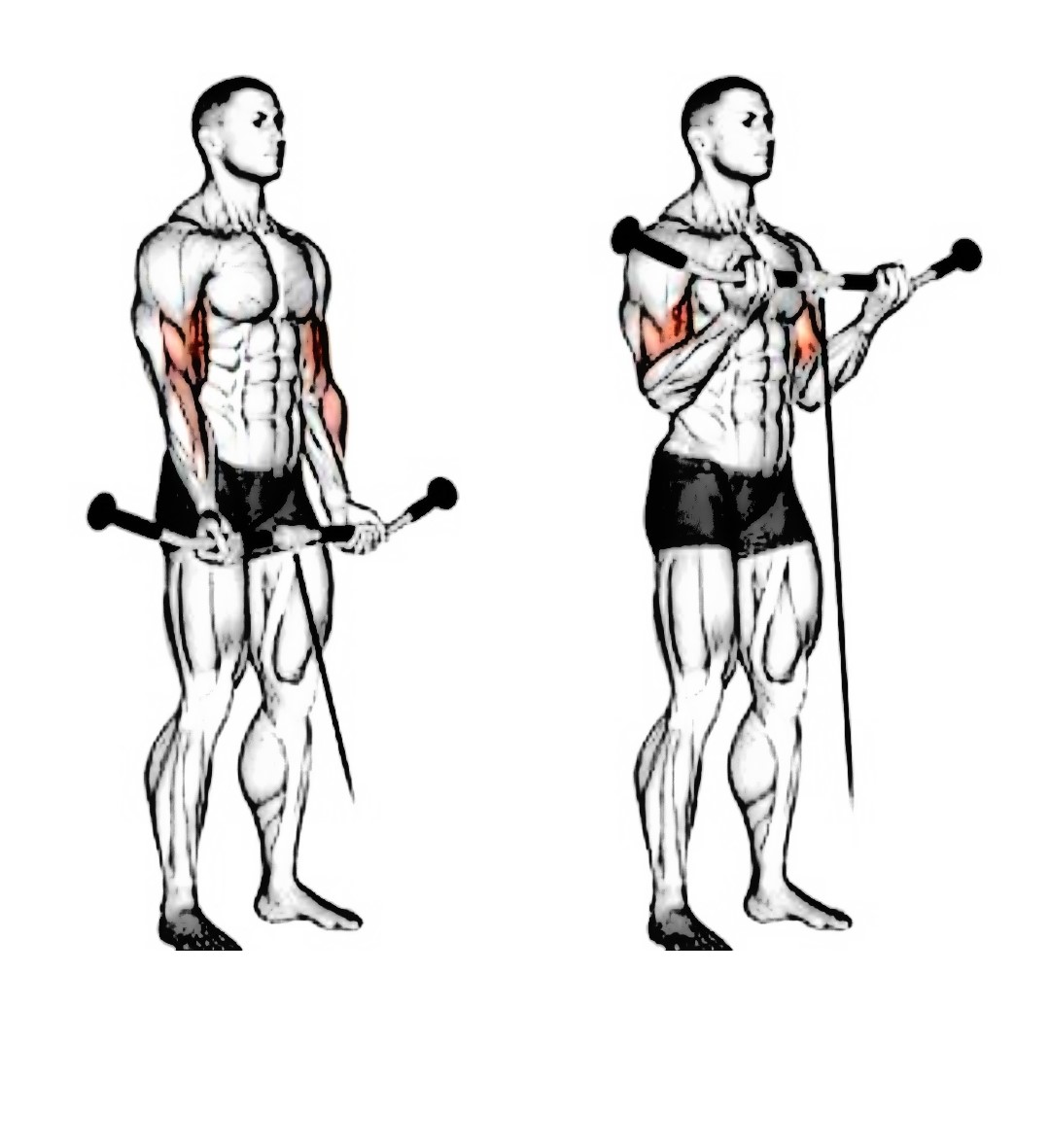 케이블을 사용한 이두근 운동으로 근육비대와 근력을 키우기위해 유용한 운동방법이다 .