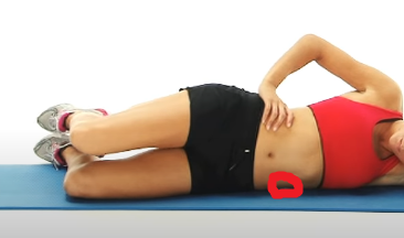 1 . 옆으로 바로 누운 상태에서 되도록 사진에 표시한 바닥의 허리 부분에