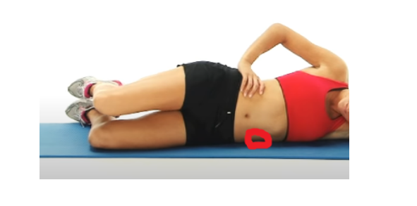 1 . 옆으로 바로 누운 상태에서 되도록 사진에 표시한 바닥의 허리 부분에