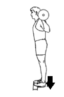 1 . 적정 무게나 맨몸으로 스탠딩 받침 위에 앞꿈치 발을 걸쳐 올린다.