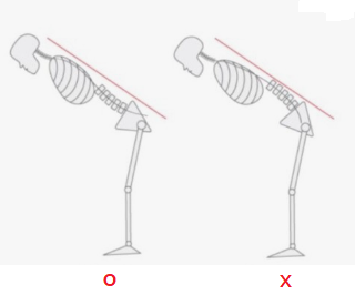 허리를 과도하게 뒤로 젖히면 복부가 이완되고 등 전체적으로 과하게 수축 긴장 상태를