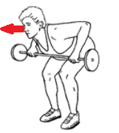 또한 바벨을 배 위치에 당길 때 배를 바벨 쪽으로 미는 동작은