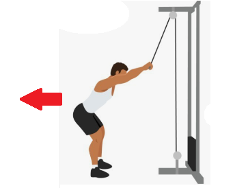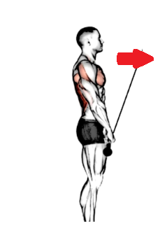 케이블을 어깨로 당겨누르듯이 몸쪽으로 가져온다.