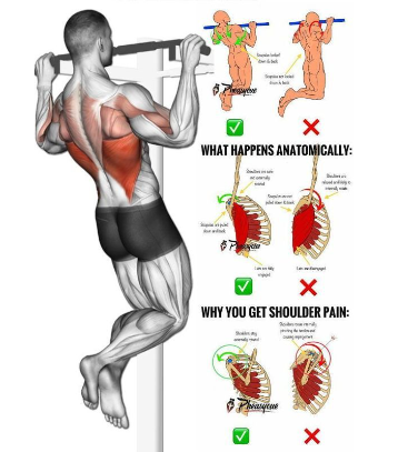 턱걸이 운동을 실시 할때 자연스러운 근육에 움직임을