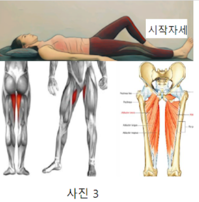 2 . 사진 1 자세에서 호흡을 마시면서 내전근 근육의 위치를 사진을