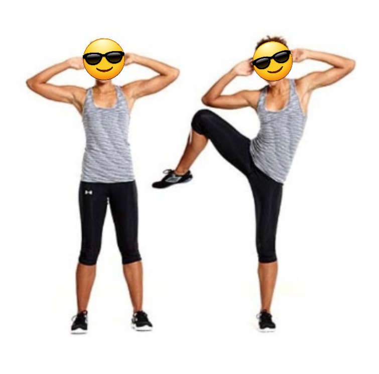 -이때 손을 만세 자세로 시작하여 무릎을 올릴 때 양손을 가슴으로 당겨 주면