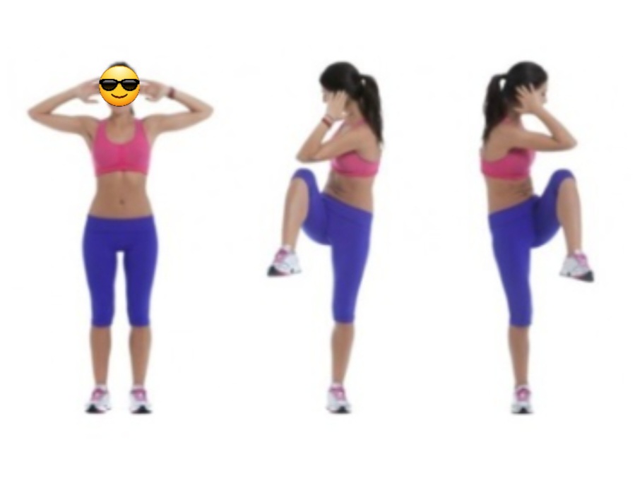-이때 손을 만세 자세로 시작하여 무릎을 올릴 때 양손을 가슴으로 당겨 주면