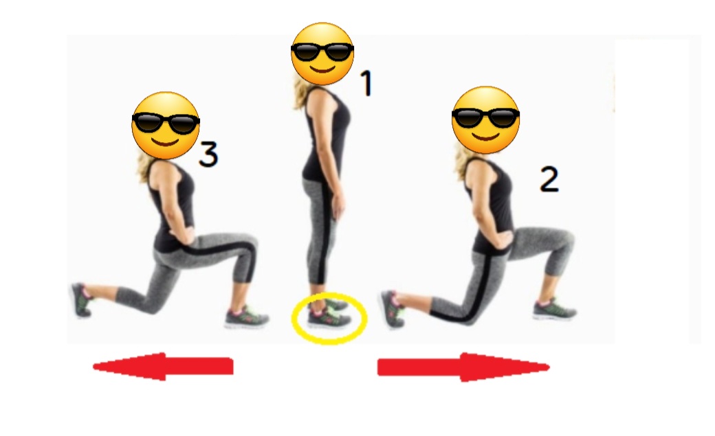 -오른쪽 발은 고정한 체 왼발이 앞으로 가면서 런지 자세를 만든다.