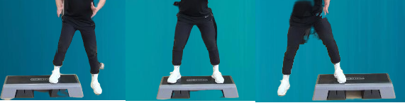 -다시 오른발이 반대쪽으로 점프하여 왼발이 스텝박스 위로 올라가고