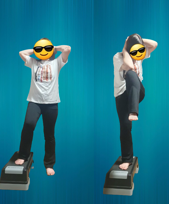 -왼발은 바닥에 두고 오른발을 스텝박스 위에 올린다.