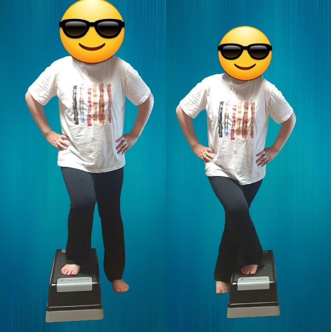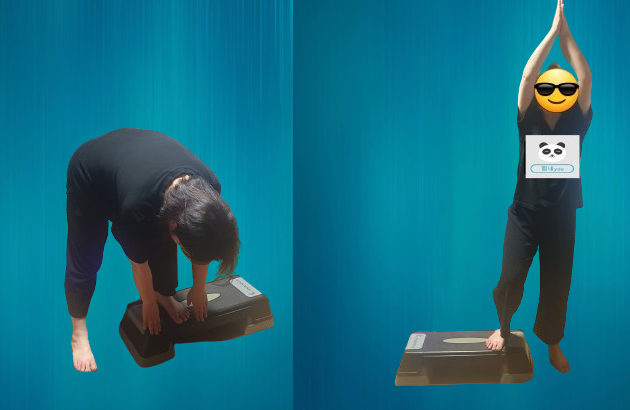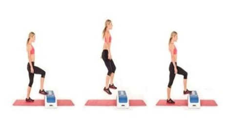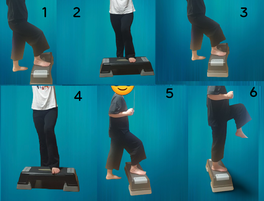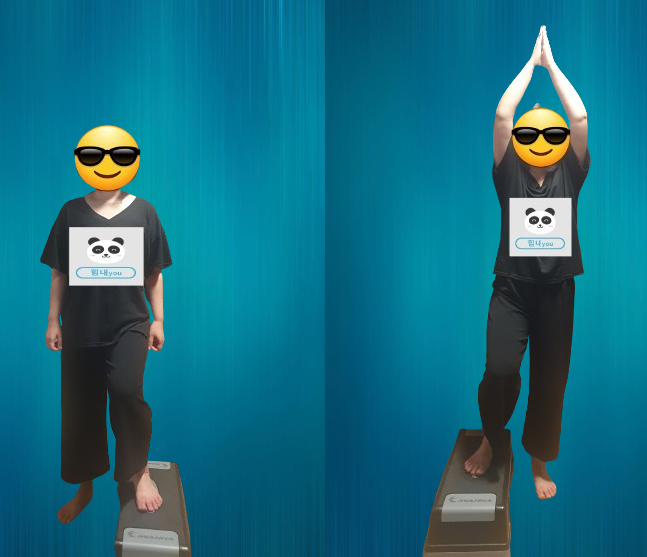 -왼발은 바닥에 두고 오른발을 스텝박스 위에 올린다.