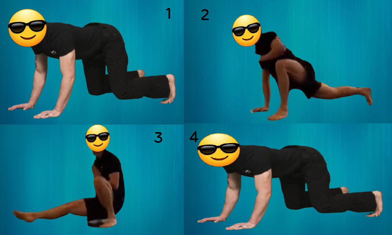 -무릎을 띄운 상태에서 오른쪽 다리와 왼쪽 손은 바닥에 고정하고