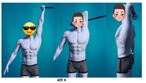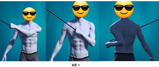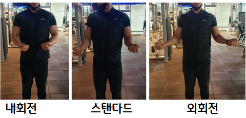 이번 준비 자세는 어깨가 회전되어 2번째(90쵀대 수축) 운동보다.