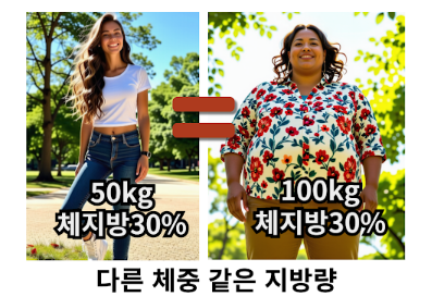 예를 들어, 같은 160cm 키에 50kg인 마른 비만 남성과