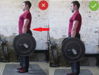 어깨가 바벨보다 앞이나 뒤로 쏠리지 않도록 정확히 수직선상에