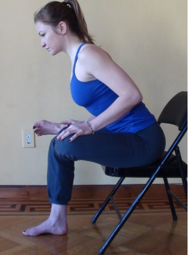 사진에서처럼 손을 올려놓은 다리의 무릎과 발목에 가볍게 올려놓아