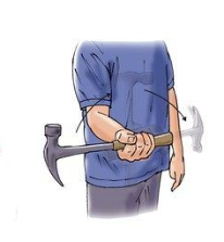 -자세: 팔꿈치 90도로 굽히고 손에 물체를 쥠