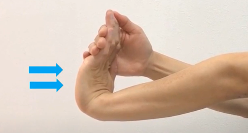 반대 손으로 손등을 아래로 눌러줌.