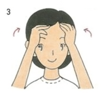 양손 손가락 끝을 이마 헤어라인 시작 부분에 대고, 원을 그리듯