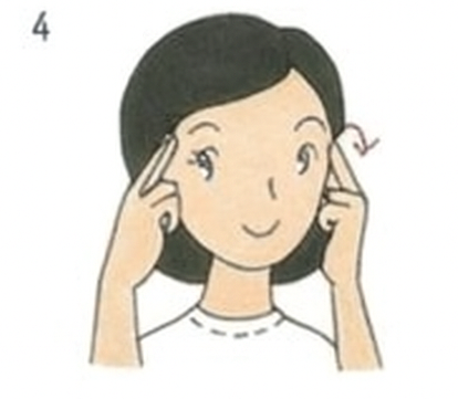 눈썹 위의 관자놀이 부근을 눌러 지그시 자극한 뒤,