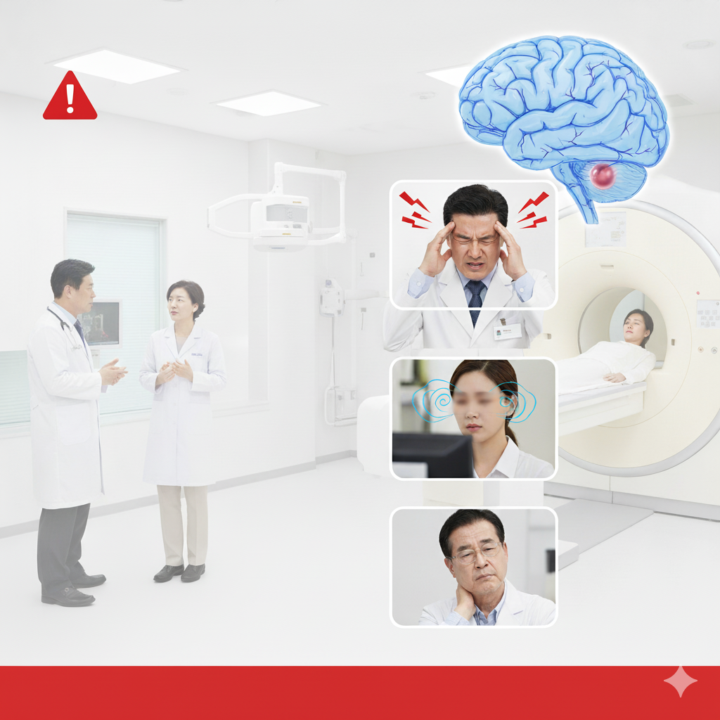 | 시야 흐림, 복시 | 뇌신경이 눌리면서 한쪽 눈이 잘 안 보이거나, 사물이 겹쳐 보이는 '복시' 현상이 나타날 수 있습니다. 갑자기 시야가 흐려진다면 위험 신호일 수 있습니다. |