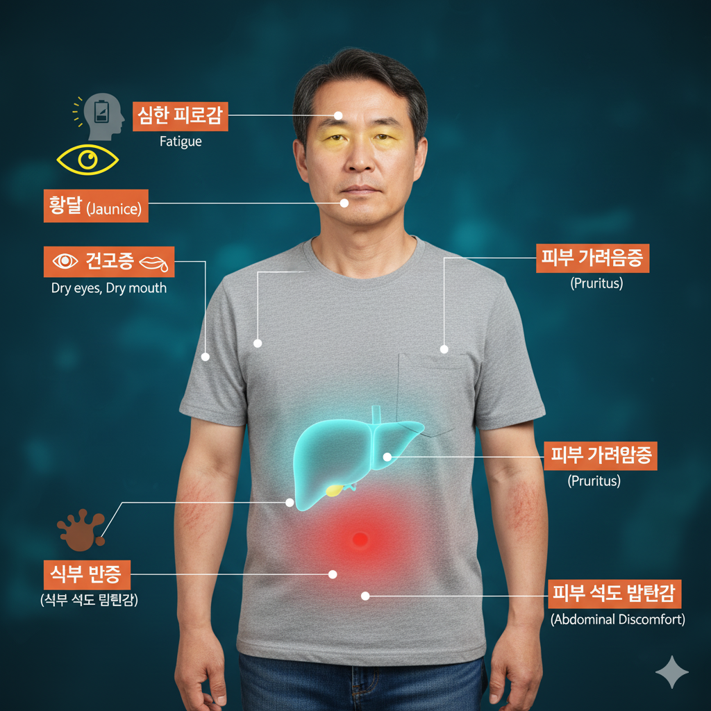 PBC는 다른 자가면역 질환(예: 건조증후군, 갑상선 질환)이 동반되는