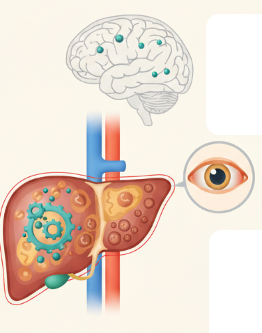 나가지 못하고 간, 뇌, 눈 등 주요 장기에 과도하게 쌓이게 됩니다.