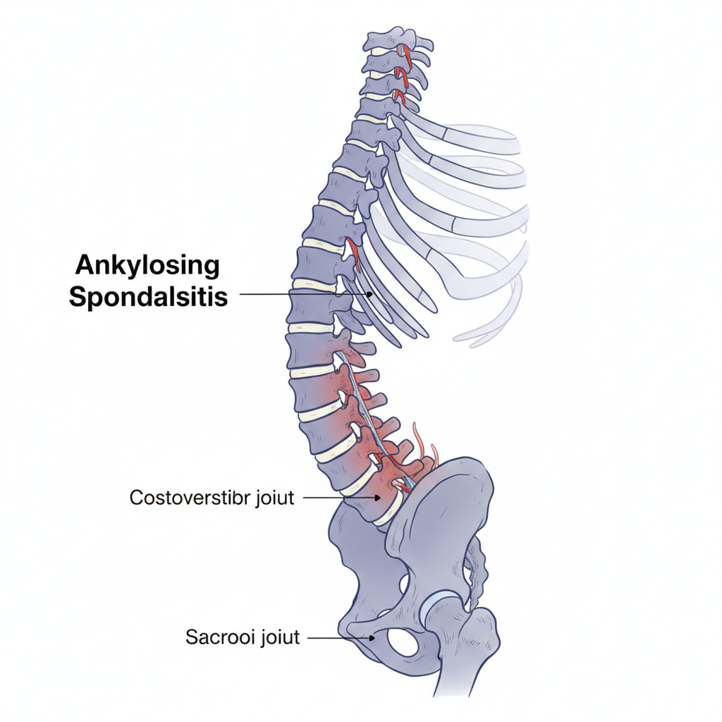 강직성 척수염은 척추(등뼈), 특히 척추와 골반을 연결하는