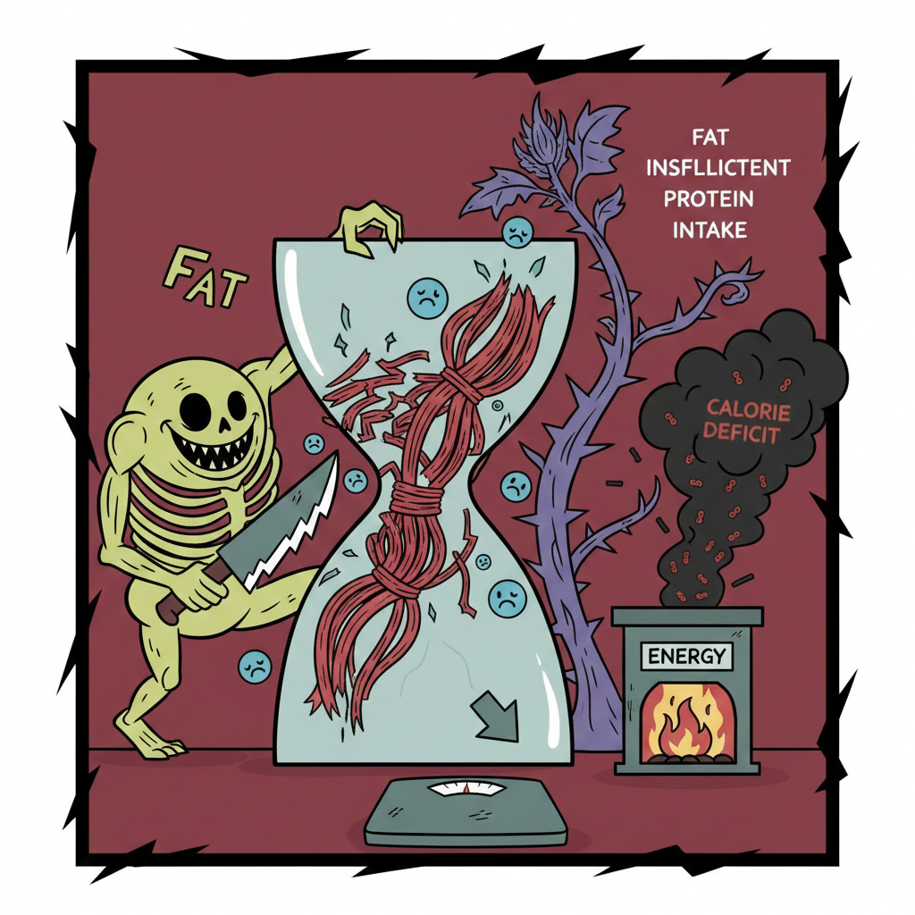 | 칼로리 제한 | 음성 에너지 균형 → 근분해 증가 |